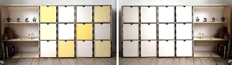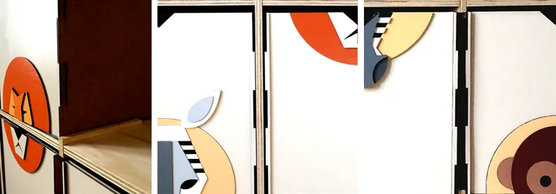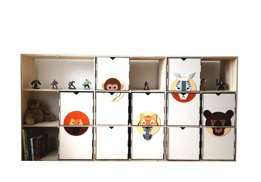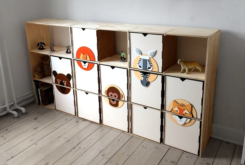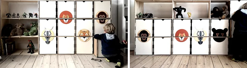 Skufferne består af et fleksibelt pladesystem der gør det muligt at udskifte illustrationerne.