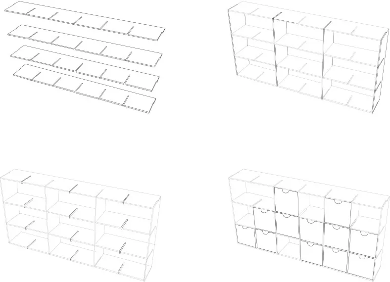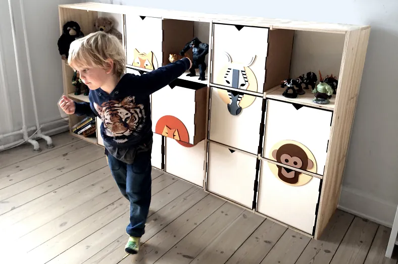 Det Fleksible Møbel tager udgangspunkt i barnet, hvor kommoden bliver et funktionelt puslespil. Det fleksible pladesystem på skufferne gør det muligt at indsætte andre flader og derfor indtænkes familiens senere udvikling og behov.